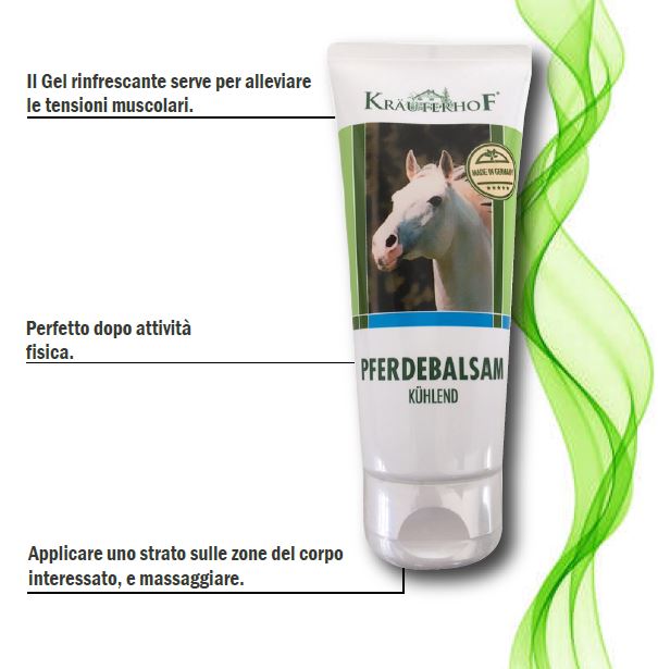 Krauterhof Balsamo cavallo con preziosi estratti di arnica, rosmarino e olio di menta rinfrescata e ravviva la pelle.