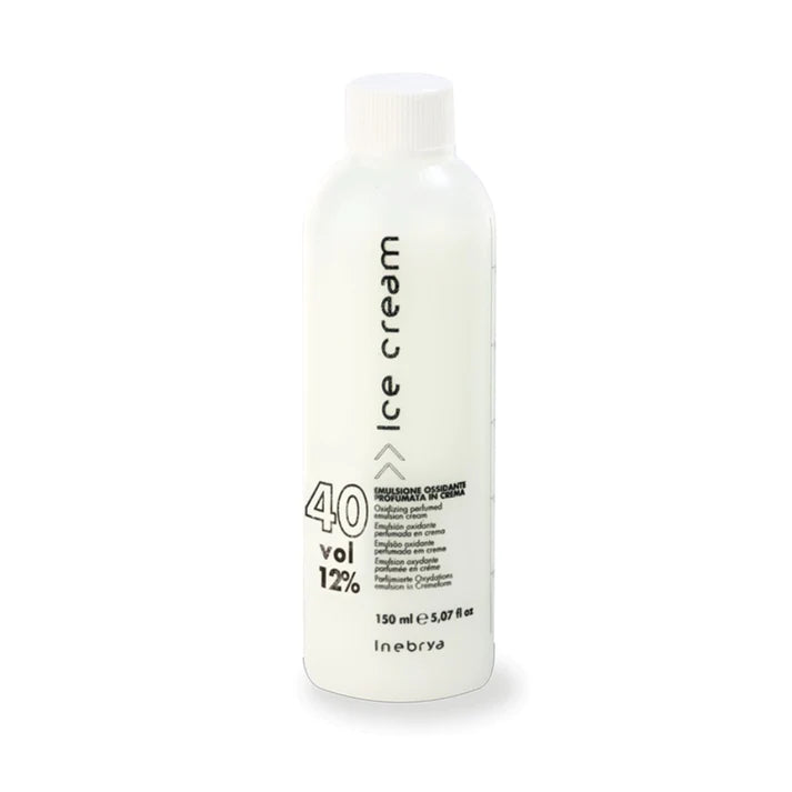 Emulsione ossidante profumata cremosa a base di acqua ossigenata.
