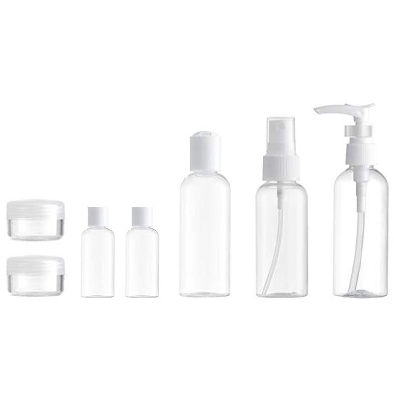 Comodo e pratico kit da viaggio molto utile per trasportare liquidi durante i viaggi in aereo poiché conforme alle misure di sicurezza per i bagagli a mano. Diversi tipi di contenitori sono adatti per liquidi, shampoo, balsamo, oli, detergenti, cosmetici, lozioni, crema contorno occhi, maschera facciale e così via. Bottiglia cosmetica decisamente a prova di perdite.
