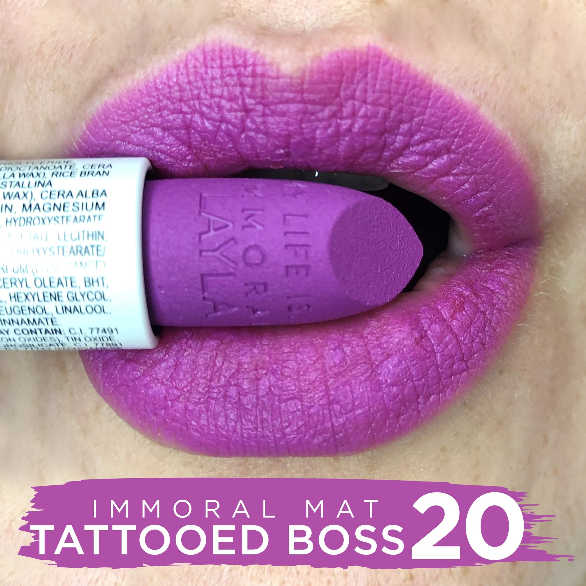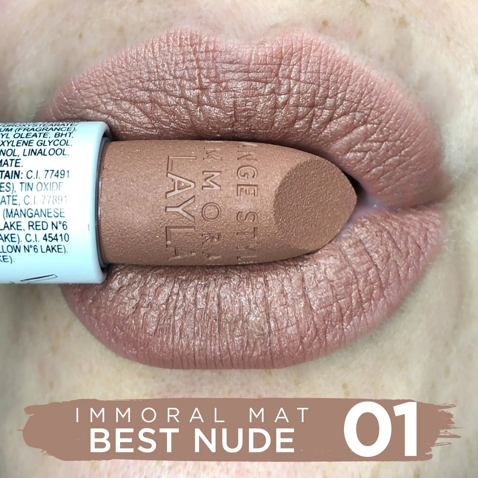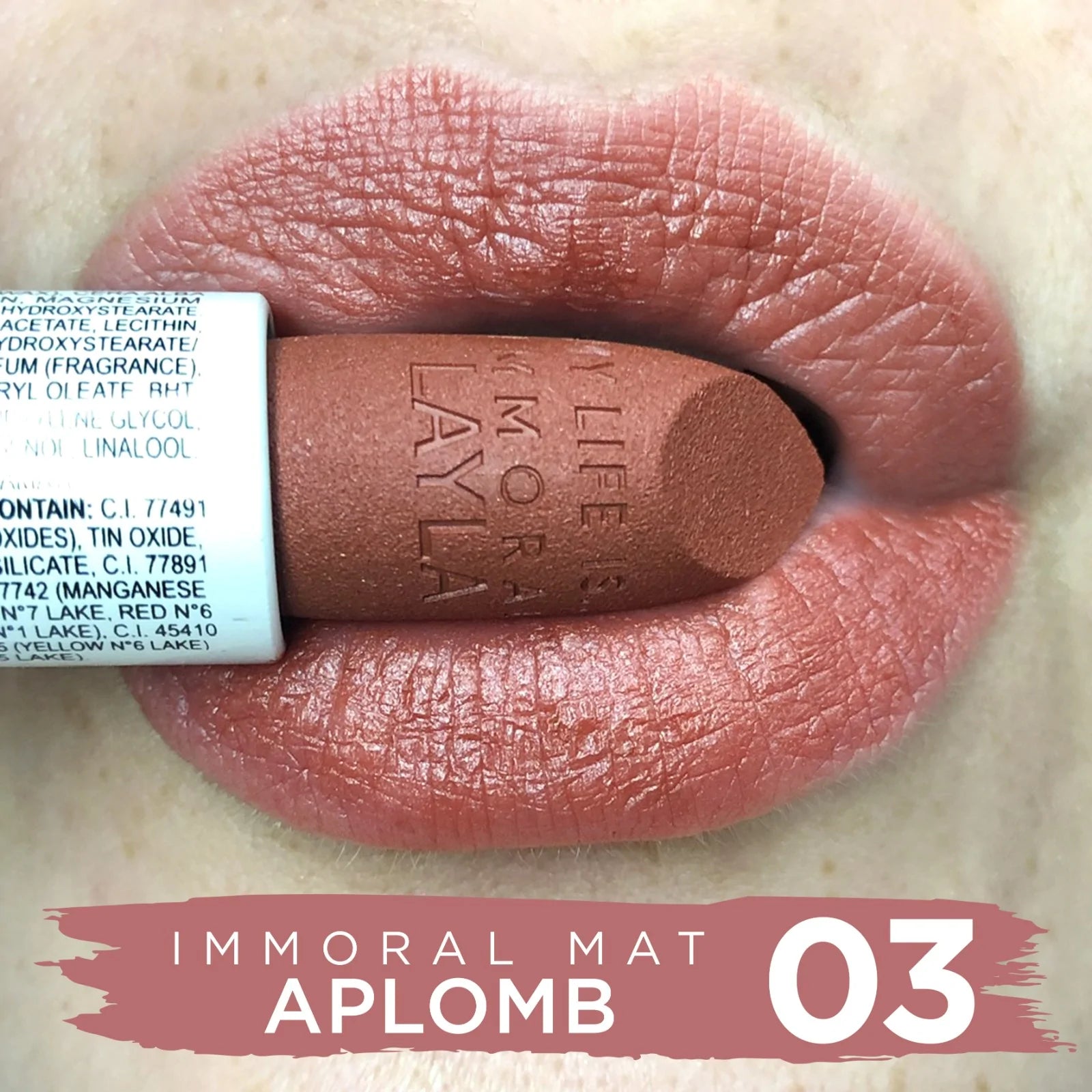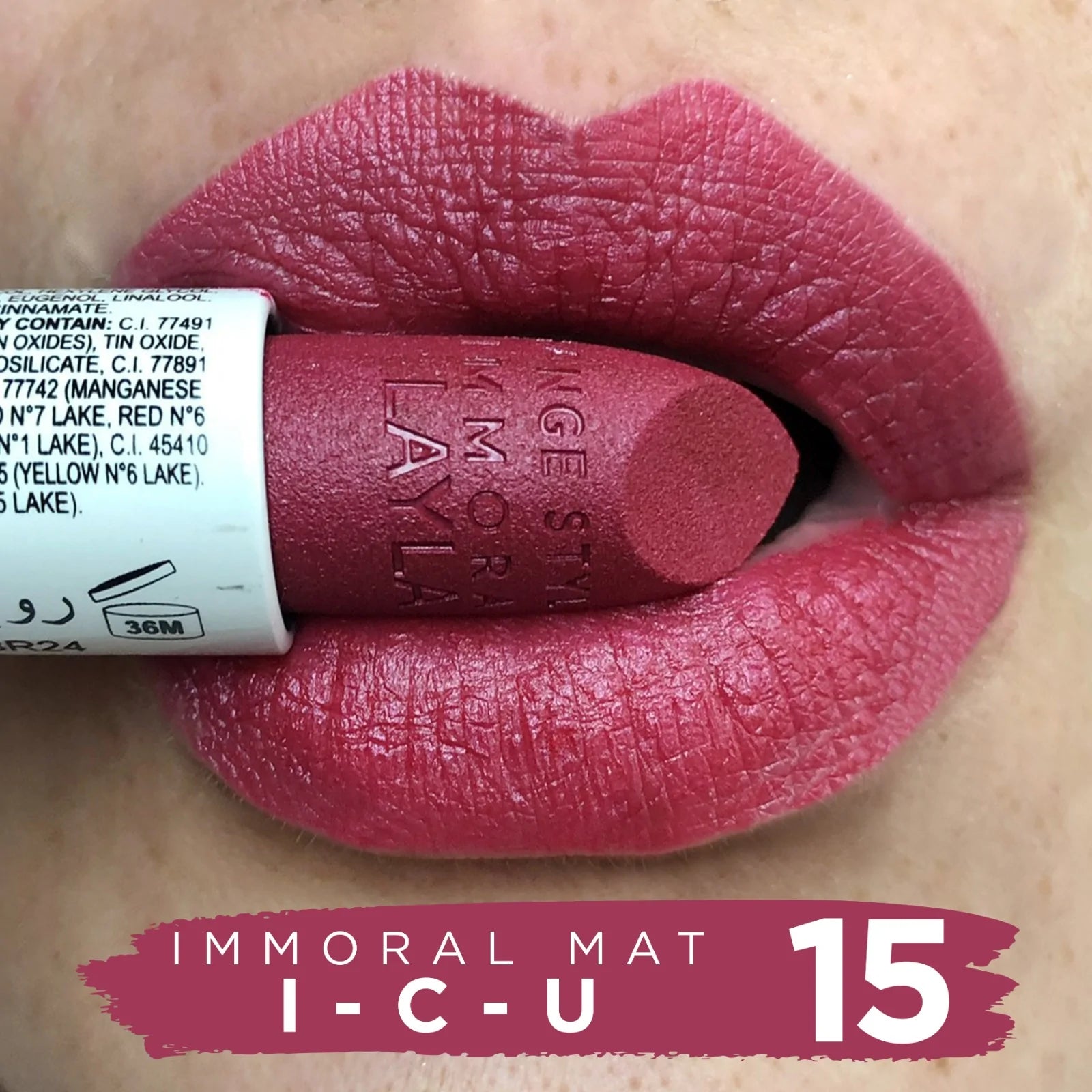 Immoral Mat Lipstick è il rossetto Mat di Layla Cosmetics con 8 ore di idratazione continua, per labbra nutrite con un incredibile effetto opaco. Disponibile in 24 colori.