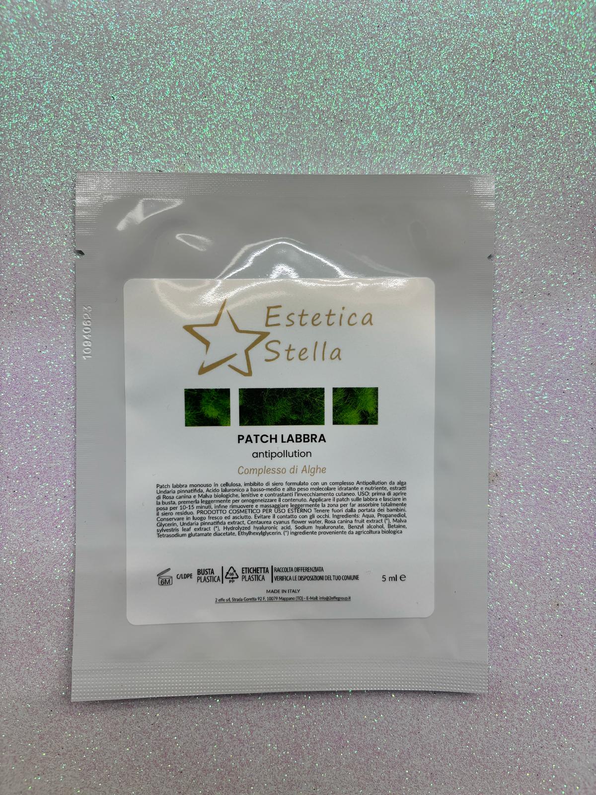 Patch labbra monouso in cellulosa, imbibito di siero formulato con un complesso Antipollution da alga Undaria pinnatifida, Acido laluronico a basso-medio e alto peso molecolare idratante e nutriente, estratti di Rosa canina e Malva biologiche, lenitive e contrastanti l'invecchiamento cutaneo. USO: prima di aprire la busta, premerla leggermente per omogeneizzare il contenuto. Applicare il patch sulle labbra e lasciare in posa per 10-15 minuti, infine rimuovere e massaggiare leggermente la zona per far assorbire totalmente il siero residuo. PRODOTTO COSMETICO PER USO ESTERNO Tenere fuori dalla portata dei bambini.