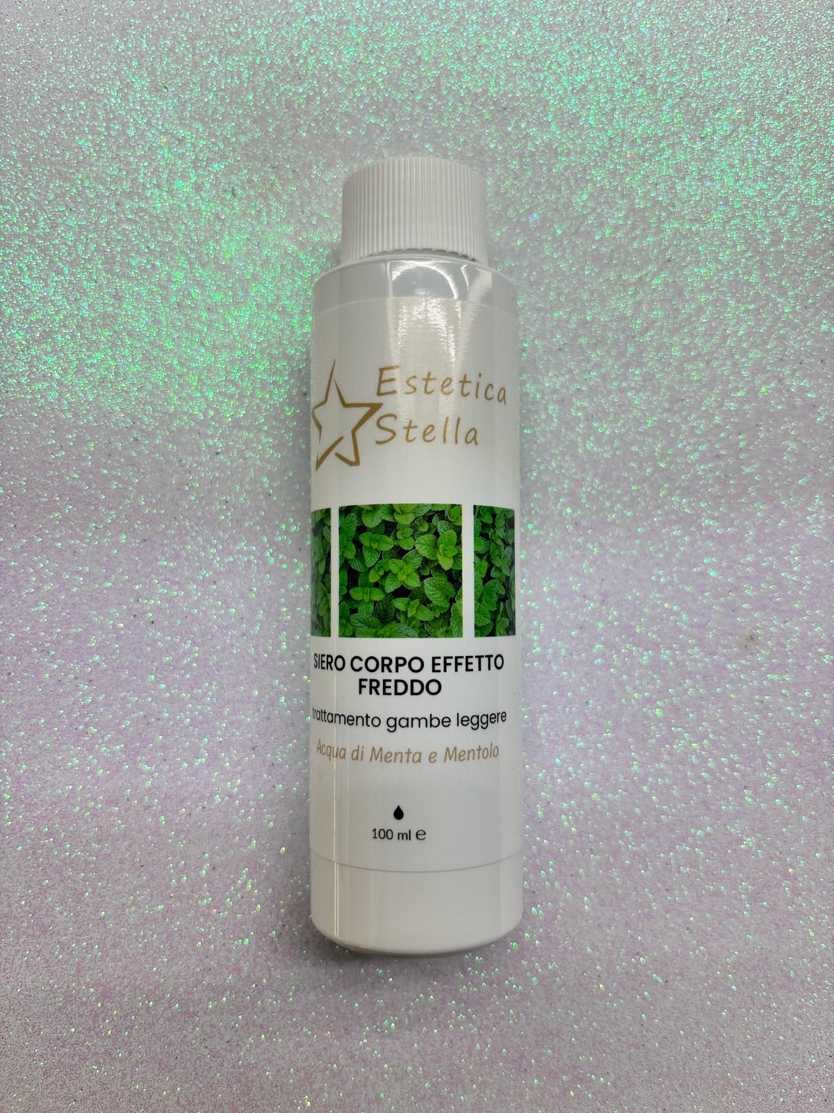 Siero corpo ad effetto freddo, indicato per il trattamento dei gonfiori e del senso di pesantezza degli arti inferiori.USO: Siero corpo da utilizzare per imbibire un supporto in leggins. Mettere il leggins asciutto e pulito in un contenitore, versare il siero, chiudere con il coperchio e scuotere affinché il liquido imbibisca bene il supporto. Prelevare il leggins , indossarlo e tenerlo in posa per venti minuti. Infine, togliere il leggins e massaggiare il siero rimasto, fino a completo assorbimento. AVVERTENZE: Prodotto cosmetico per uso esterno, in caso di contatto con occhi e mucose sciacquare abbondantemente. Conservare ben chiuso in un luogo fresco, asciutto e pulito, al riparo da fonti dirette di luce e calore. Tenere fuori dalla portata dei bambini.